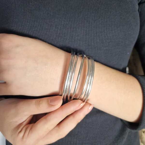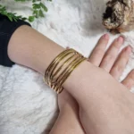 Ce bracelet manchette, élégant et intemporel, se distingue par son design multi-rang entrelacé. Il apporte une touche moderne et raffinée à votre poignet. Existe en deux définitions, couleur dorée pour un look lumineux et sophistiqué, et couleur argentée pour une allure chic et discrète. Manchette ouverte, ajustable à la taille du poignet. Élégant et texturé avec un effet finement martelé sur chaque bande du bracelet. Son design à la fois minimaliste et travaillé est parfait aussi bien pour le quotidien que pour une tenue habillée. Fabriqué en acier inoxydable.