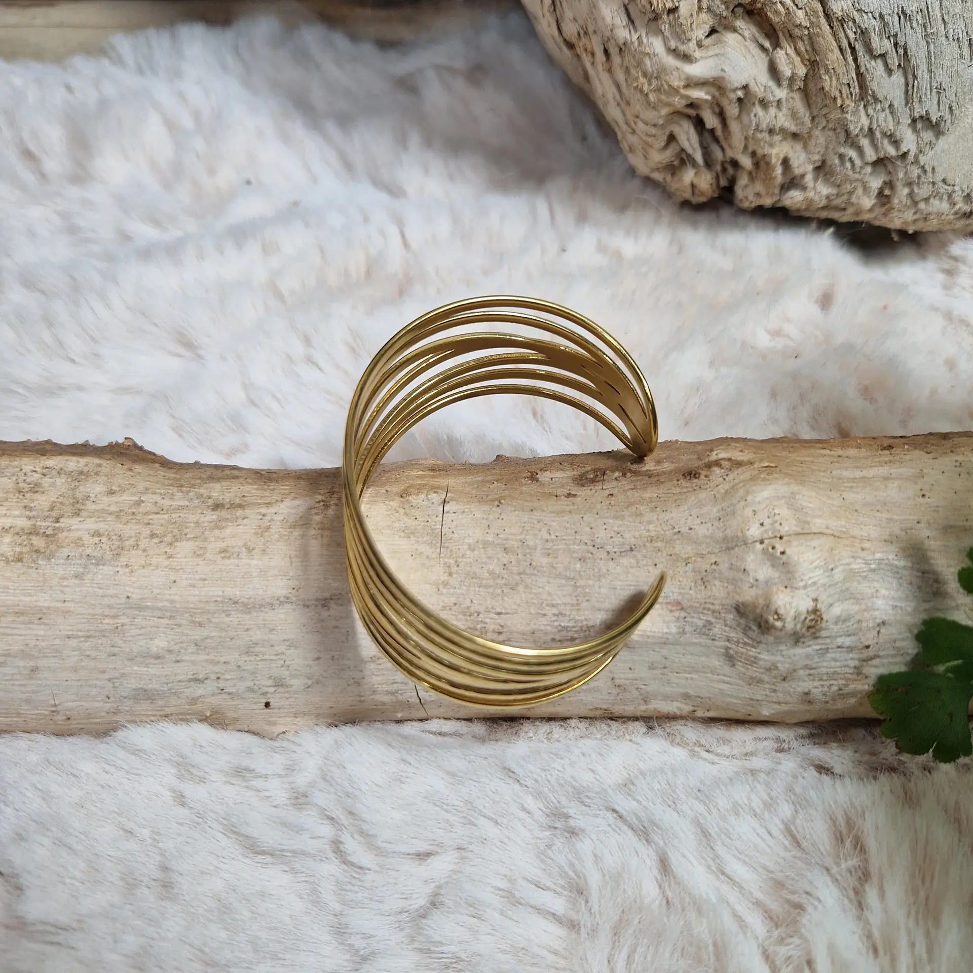Ce bracelet manchette, élégant et intemporel, se distingue par son design multi-rang entrelacé. Il apporte une touche moderne et raffinée à votre poignet. Existe en deux définitions, couleur dorée pour un look lumineux et sophistiqué, et couleur argentée pour une allure chic et discrète. Manchette ouverte, ajustable à la taille du poignet. Élégant et texturé avec un effet finement martelé sur chaque bande du bracelet. Son design à la fois minimaliste et travaillé est parfait aussi bien pour le quotidien que pour une tenue habillée. Fabriqué en acier inoxydable.