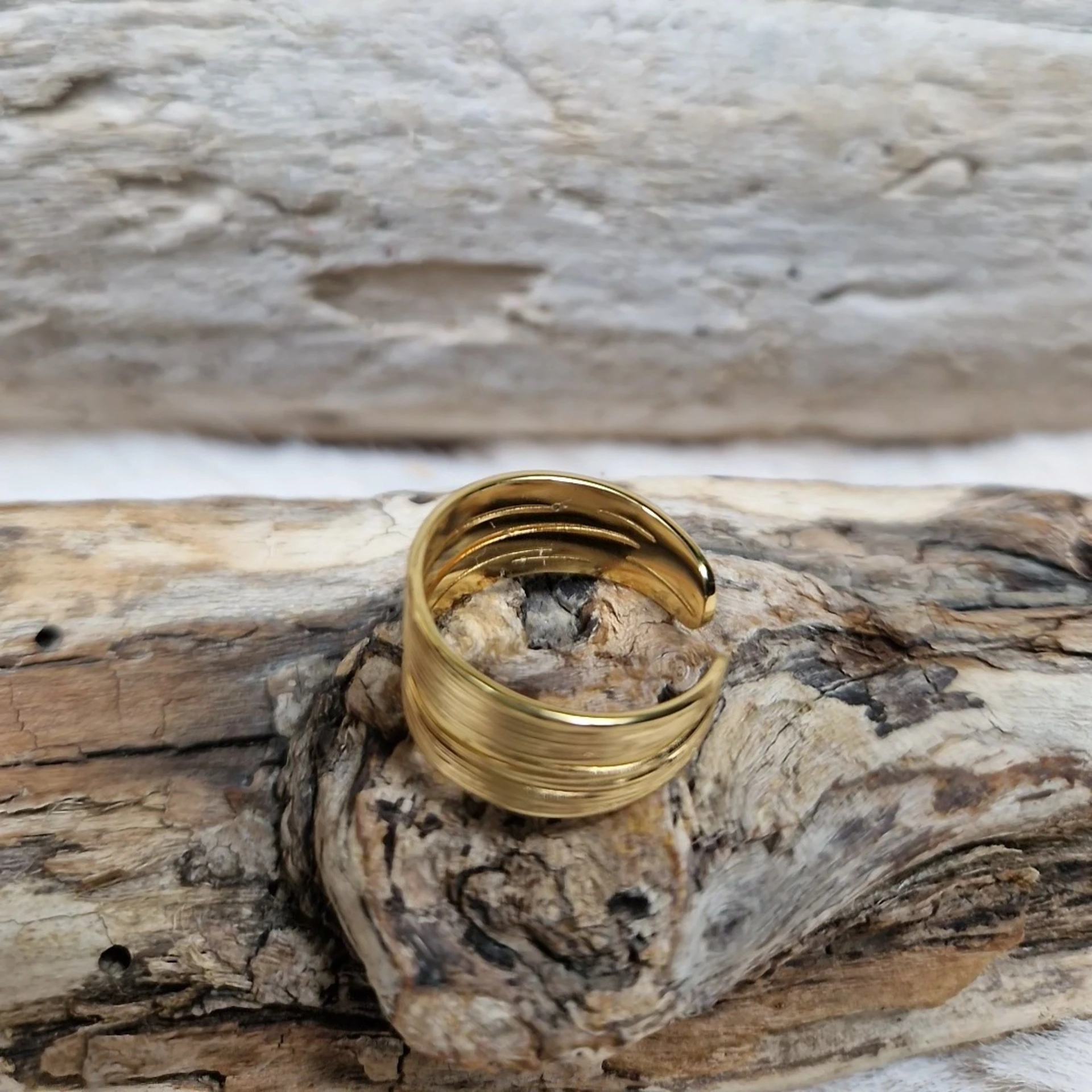 – Bague : Cette bague dorée au design moderne et audacieux se compose de multirang apportant une touche raffinée. Bague ouverte qui permet un ajustement facile. Bague en acier inoxydable.