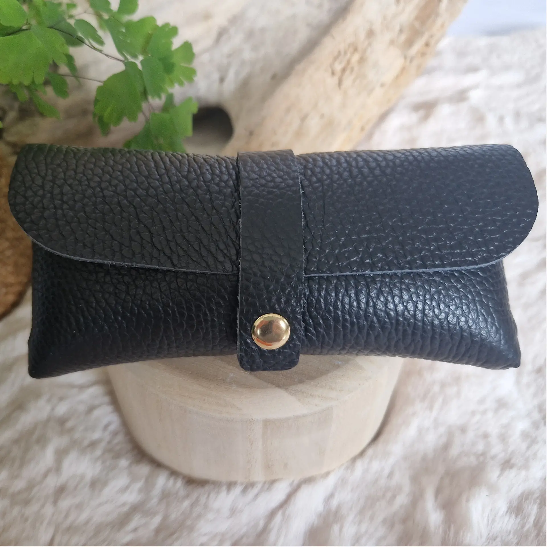 Étui à lunettes en cuir grainé, chic et pratique, cet étui protège vos lunettes grâce à son rabat aimanté doré. Compact et raffiné, il allie style et fonctionnalité au quotidien.