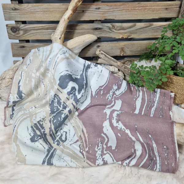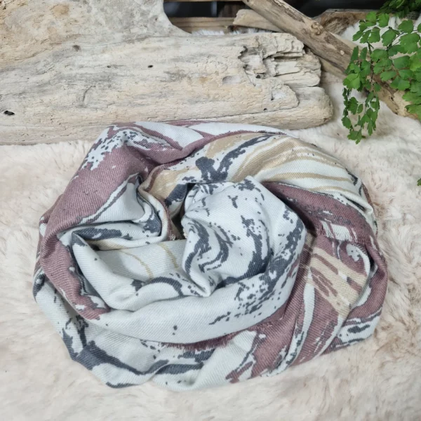 Apportez style et douceur à vos tenues avec ce foulard aux motifs abstraits et aux tons harmonieux. Chic et polyvalent, il complète vos looks en toute saison.