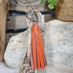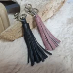Porte-clés pompon en cuir