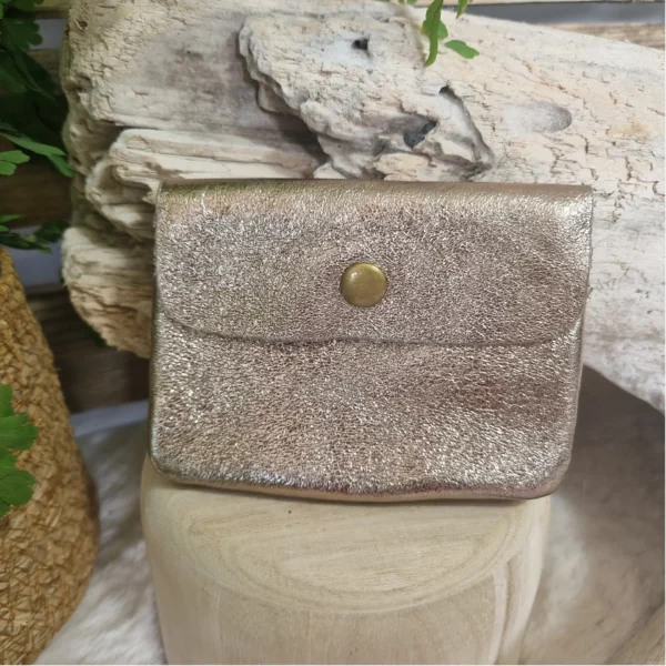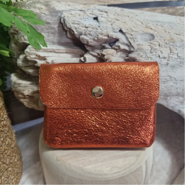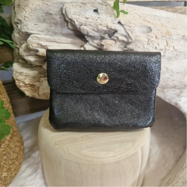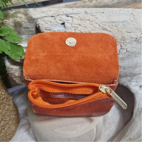 Alliez style et fonctionnalité avec ce porte-monnaie en cuir irisé. Son compartiment principal se ferme par un bouton aimanté doré, tandis qu’une poche zippée sécurise vos pièces et petits objets. Compact et léger, il se glisse facilement dans un sac ou une poche tout en gardant vos essentiels à portée de main.Un accessoire intemporel, idéal pour accompagner votre quotidien avec élégance et simplicité.Porte-monnaie en croûte de cuir finition enduite. Cuir de bovin. Pas de doublure. Cuir de fabrication italienne.