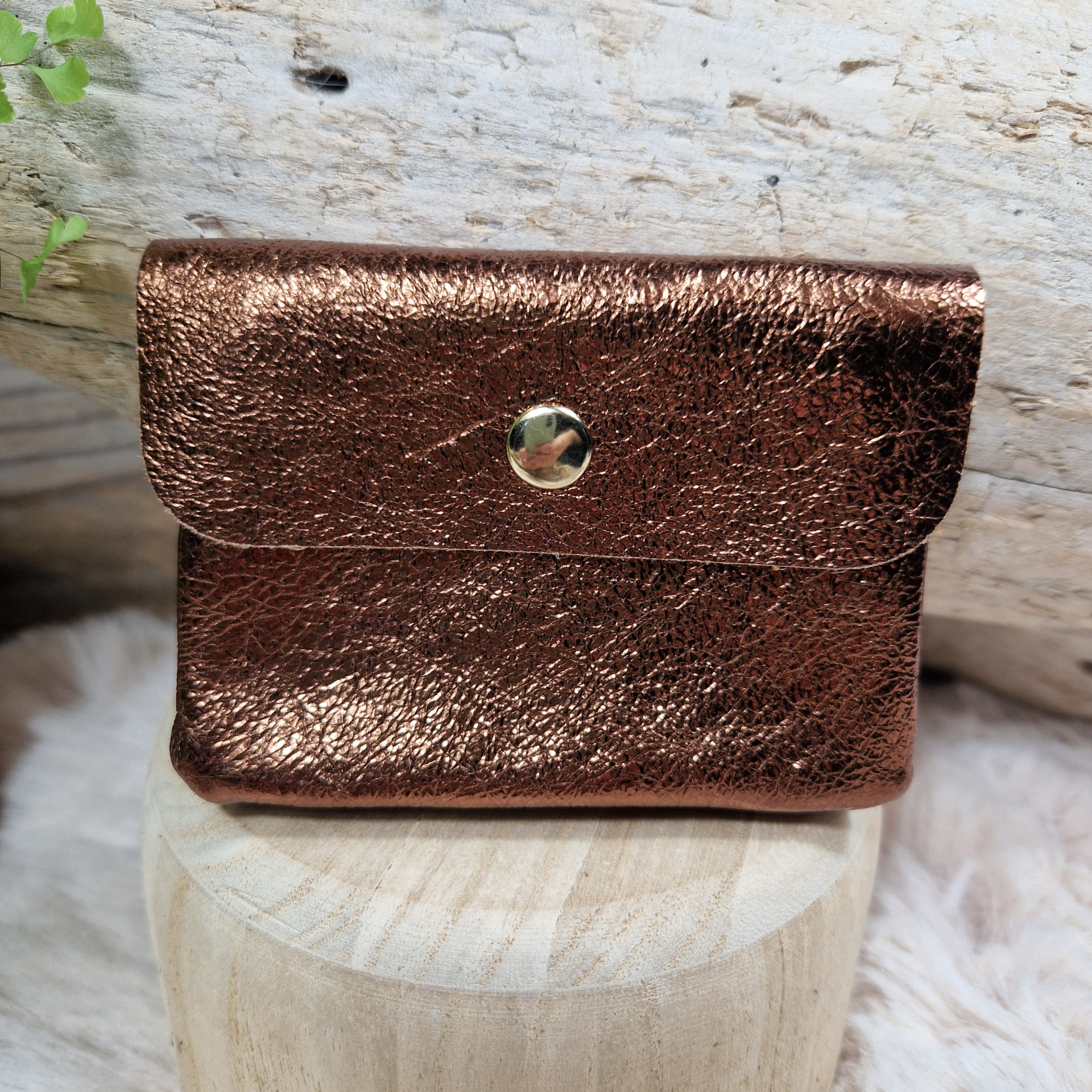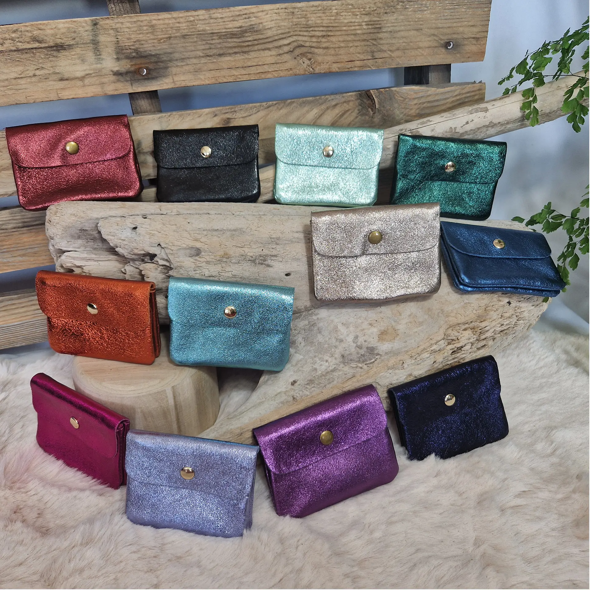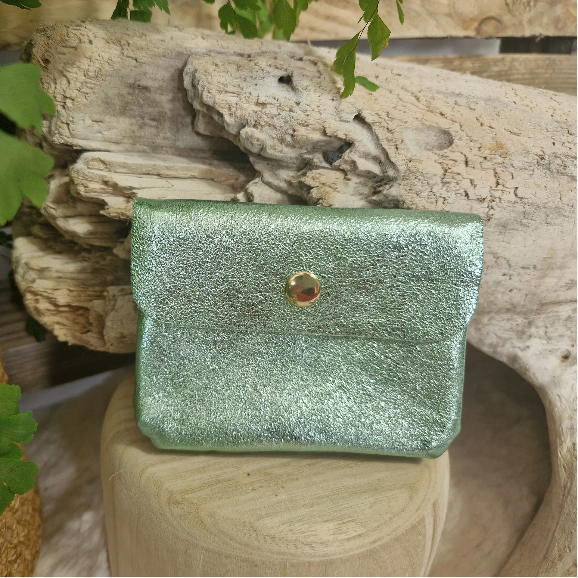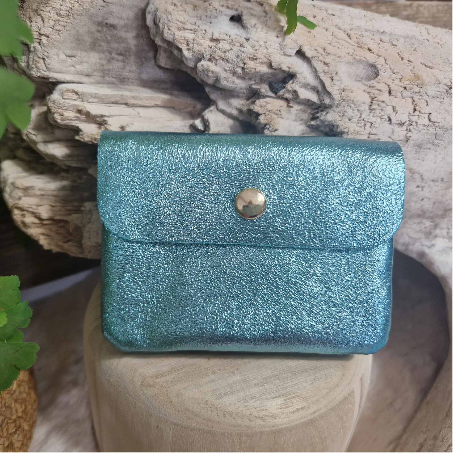 Alliez style et fonctionnalité avec ce porte-monnaie en cuir irisé. Son compartiment principal se ferme par un bouton aimanté doré, tandis qu’une poche zippée sécurise vos pièces et petits objets. Compact et léger, il se glisse facilement dans un sac ou une poche tout en gardant vos essentiels à portée de main.Un accessoire intemporel, idéal pour accompagner votre quotidien avec élégance et simplicité.Porte-monnaie en croûte de cuir finition enduite. Cuir de bovin. Pas de doublure. Cuir de fabrication italienne.