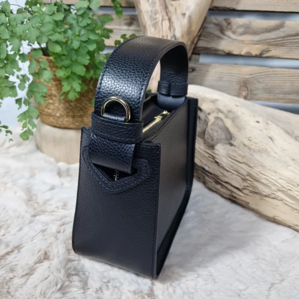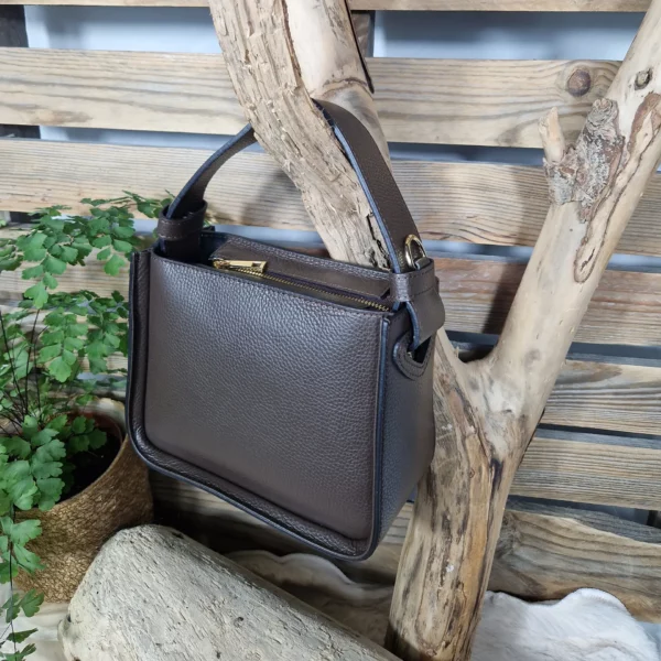 Élégant et pratique, ce sac en cuir grainé offre un design compact et raffiné. Doté d’une anse confortable, d’une bandoulière amovible et d’une fermeture zippée, il allie style et fonctionnalité au quotidien.