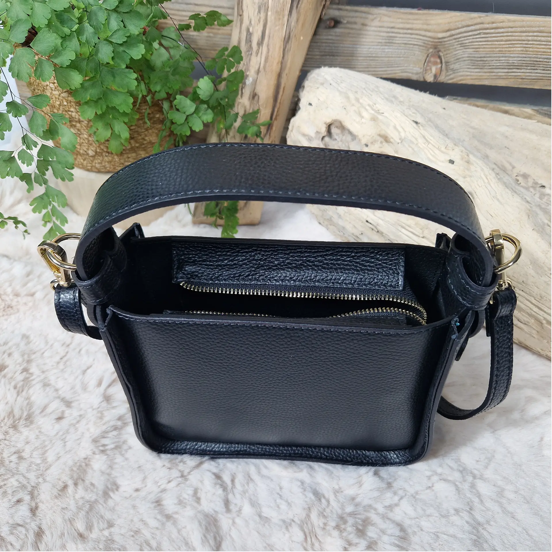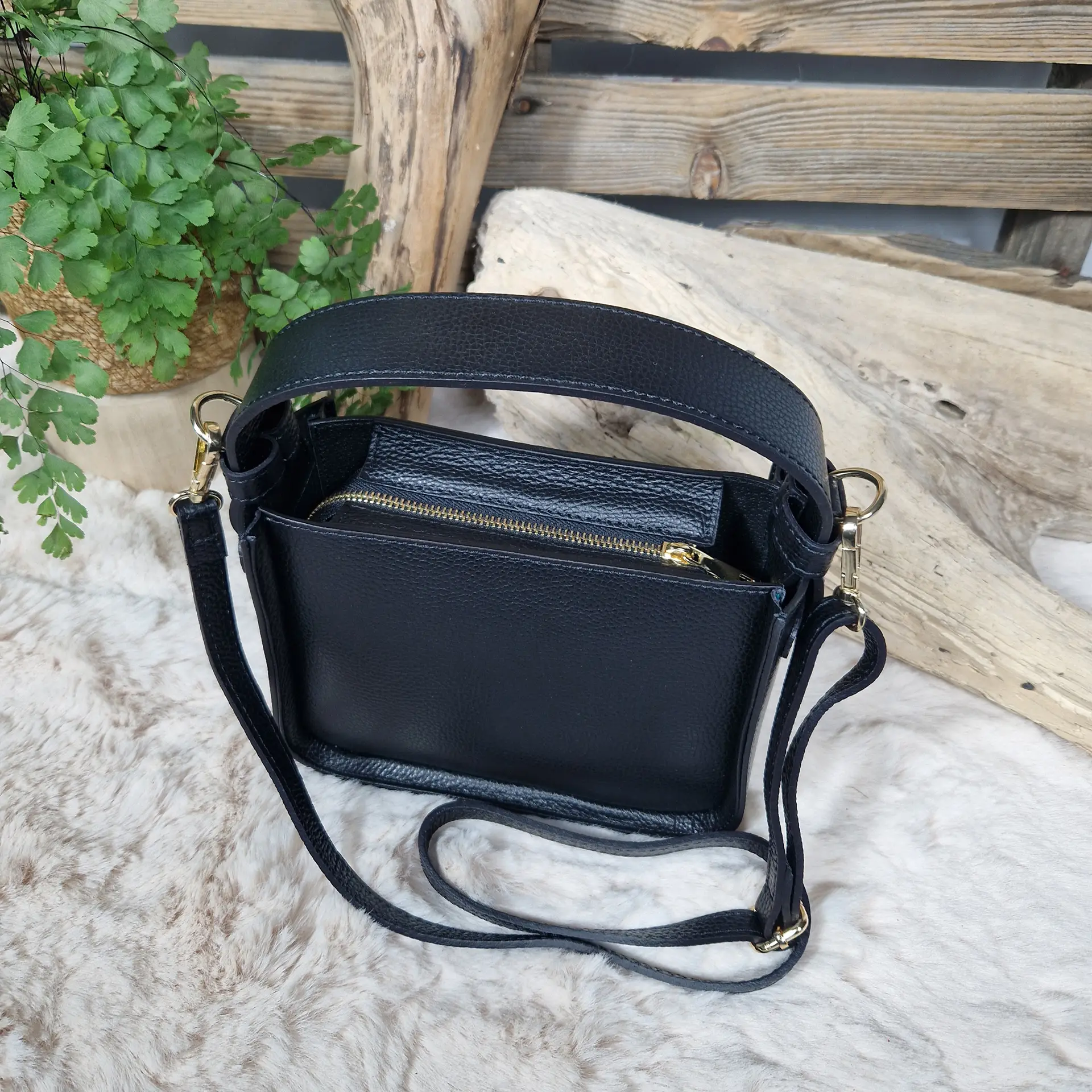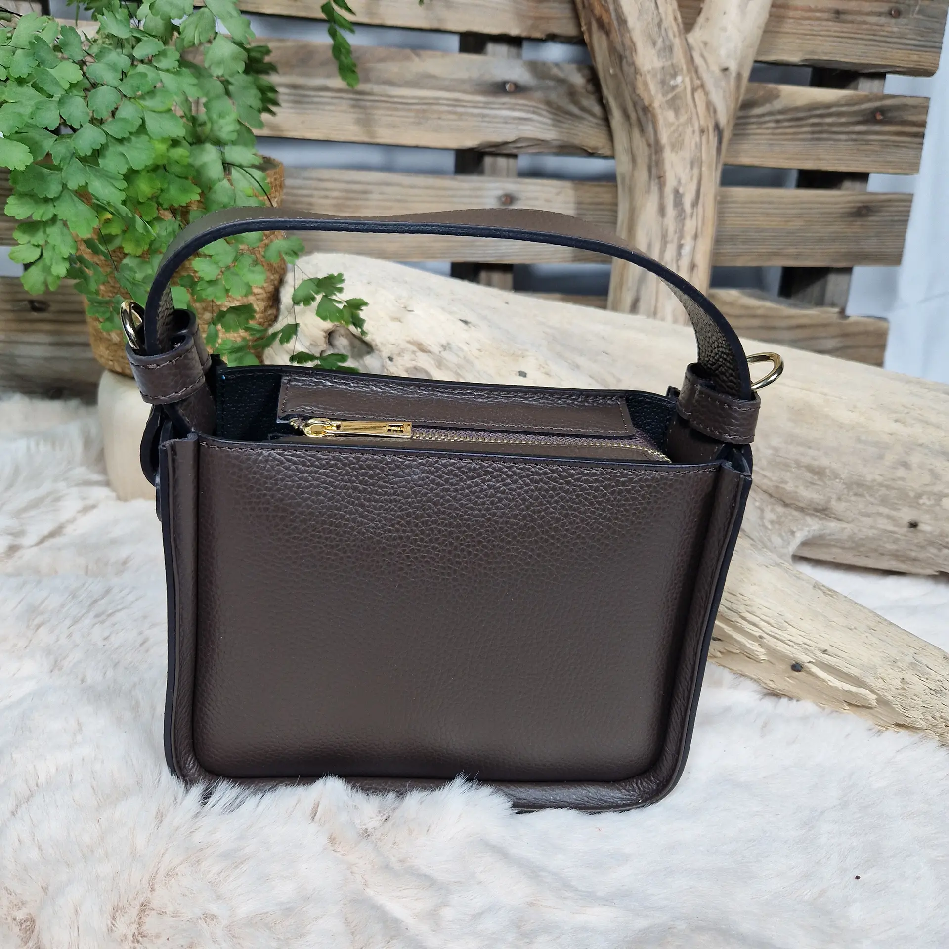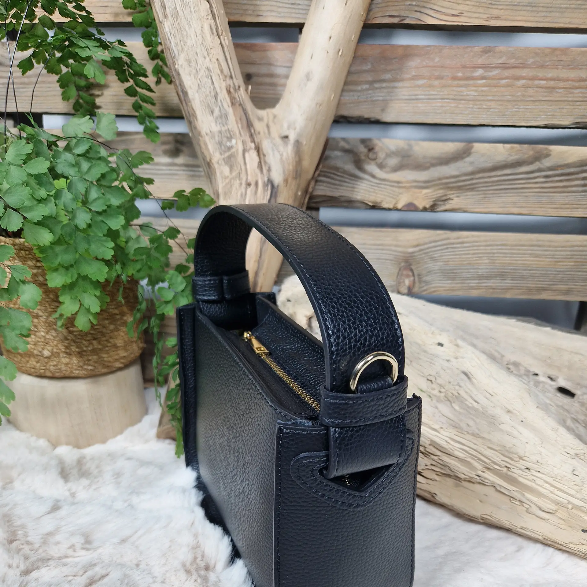 Élégant et pratique, ce sac en cuir grainé offre un design compact et raffiné. Doté d’une anse confortable, d’une bandoulière amovible et d’une fermeture zippée, il allie style et fonctionnalité au quotidien.