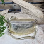 Sac banane en cuir irisé au design élégant et souple avec fermeture éclair dorée et sangle ajustable, parfait pour un look pratique et lumineux.