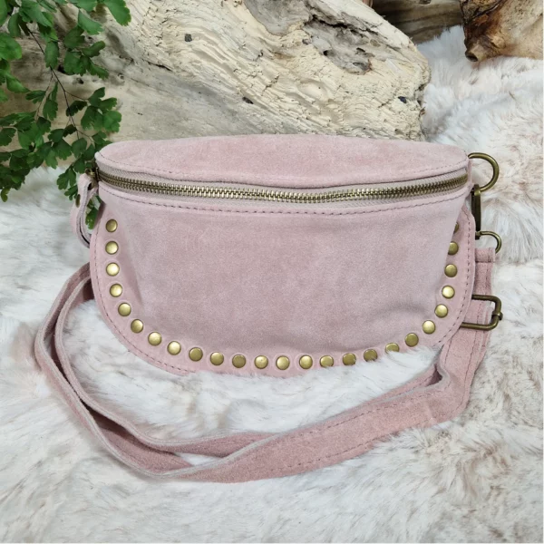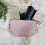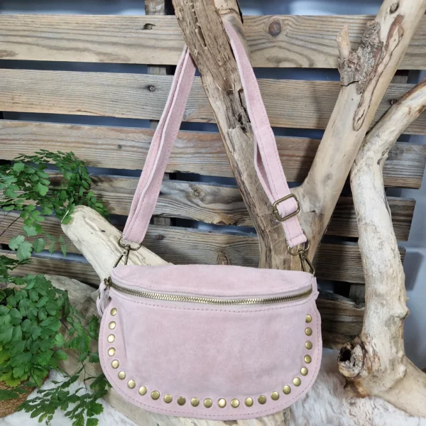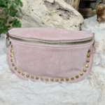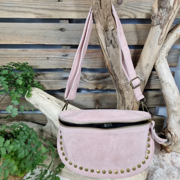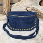Ce sac banane en croûte de cuir velours avec détails cloutés apporte une touche d’élégance décontractée à vos tenues. Sa texture douce s’associe à un design arrondi et raffiné, rehaussé de rivets métalliques vieillis qui soulignent son caractère moderne et tendance. Pratique et stylé, il dispose d’une fermeture zippée sécurisée ainsi qu’une bandoulière ajustable en cuir assorti pour un porté confortable. Son compartiment intérieur possède une petite poche zippée plaquée. Un accessoire chic et compact, idéal pour accueillir vos essentiels du quotidien avec style, parfait pour accompagner tous vos looks. Sac en croûte de cuir finition velours. Cuir de bovin. Doublure intérieure en polyamide. Cuir de fabrication italienne.