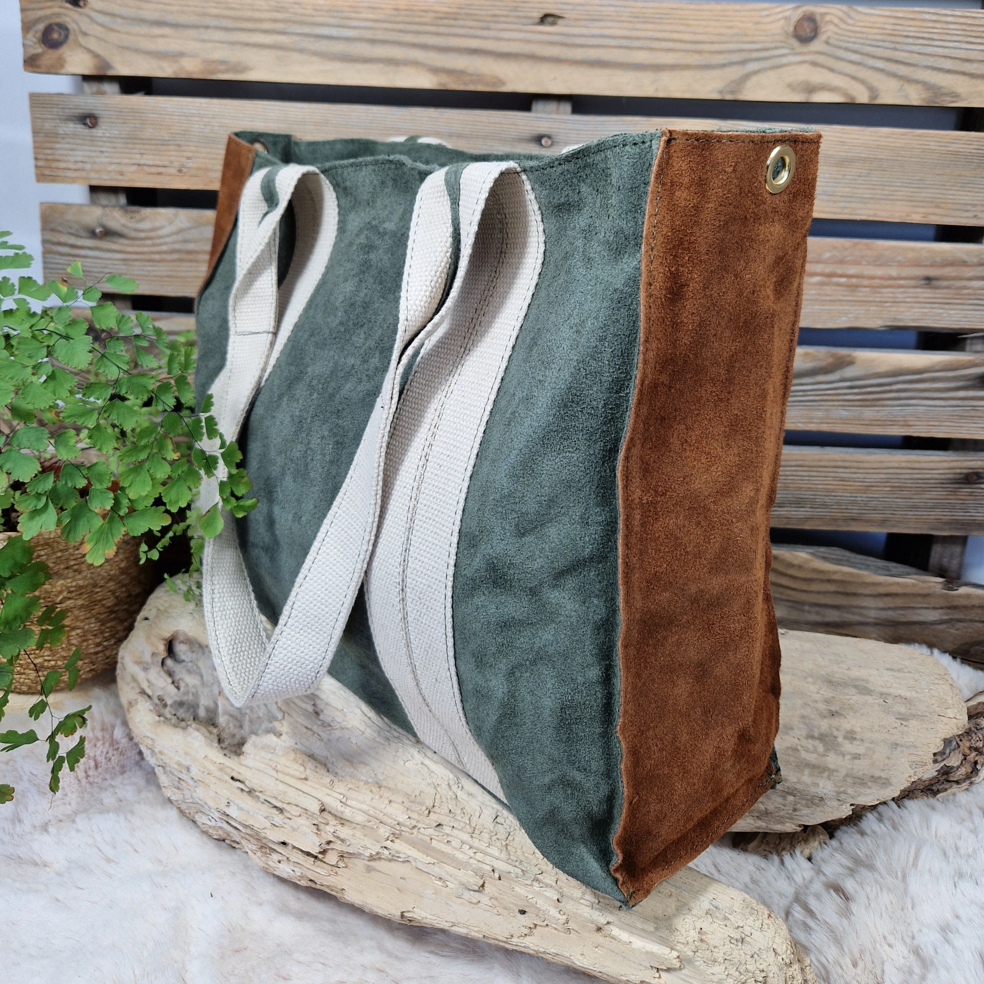 Craquez pour ce sac cabas en cuir suédé au charme naturel et intemporel. Sa teinte douce s’accorde facilement avec toutes vos tenues, du quotidien aux sorties plus habillées. Confectionné dans une matière souple et agréable au toucher, il offre un bel espace de rangement avec une doublure intérieure et une poche zippée pour garder vos essentiels en sécurité.Ses anses larges en textile renforcé assurent un porté confortable à l’épaule, tandis que ses finitions soignées apportent une touche authentique et moderne. Un allié idéal pour allier style et praticité au quotidien. Sac en croûte de cuir finition velours. Cuir de bovin. Doublure intérieure en polyester. Anses en coton. Cuir de fabrication italienne.
