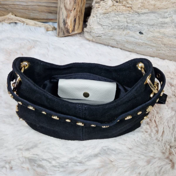 Sac en cuir velours avec rivets dorés