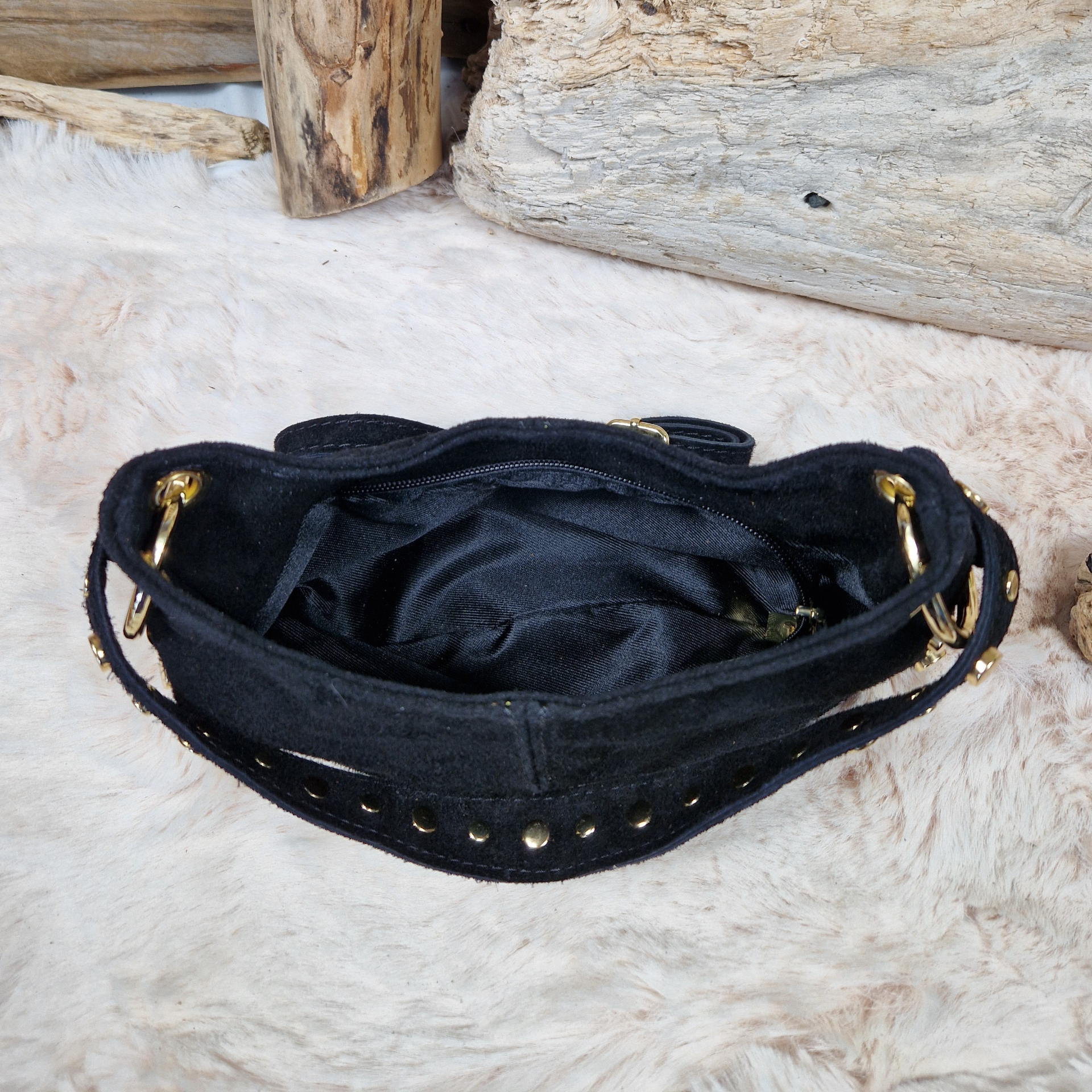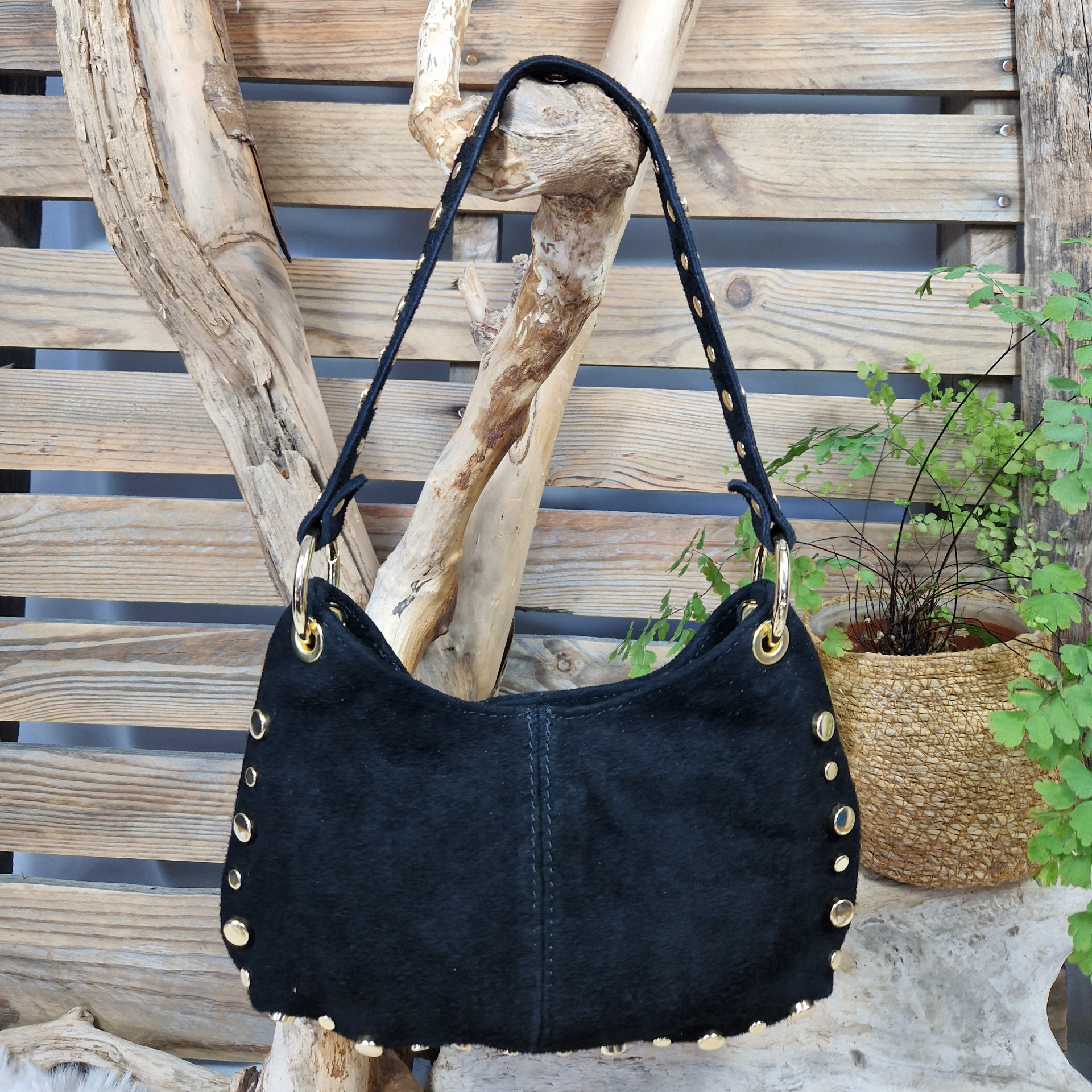 Sac en cuir velours avec rivets dorés